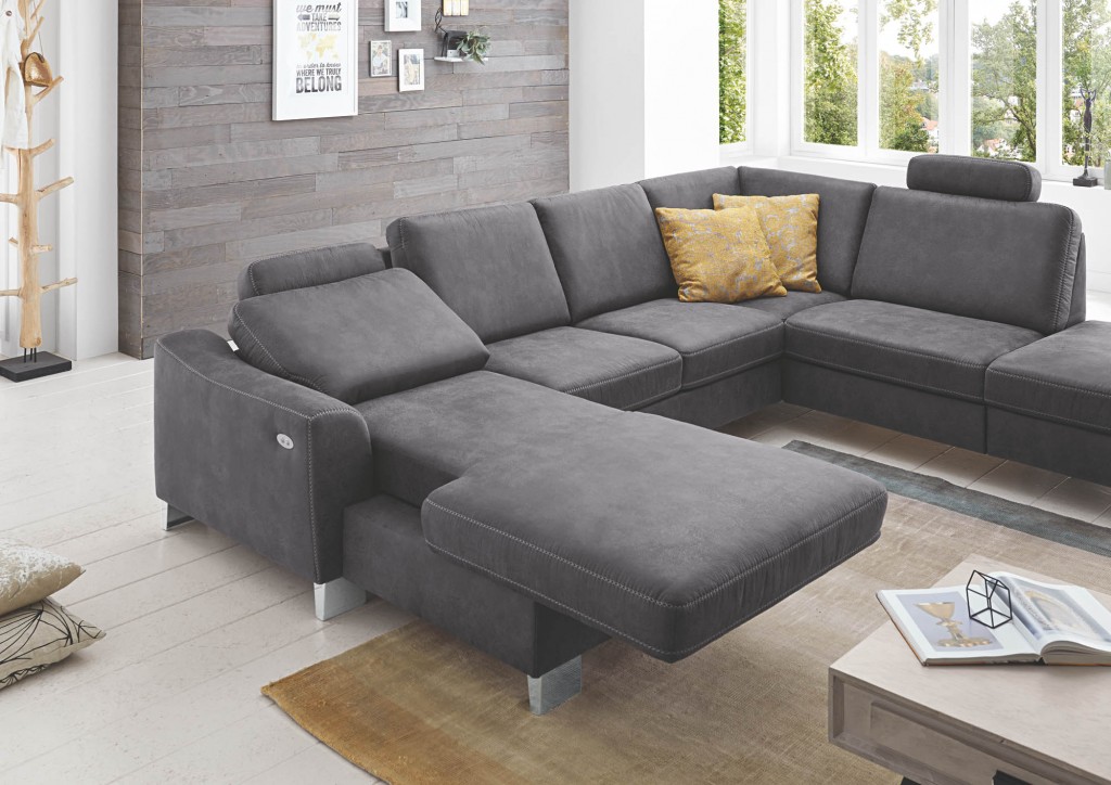 Canape mit Motor, Armlehne links, Rücken Nessel, 1x Kopfstütze, BHT ca. 92/90/167-203 cm