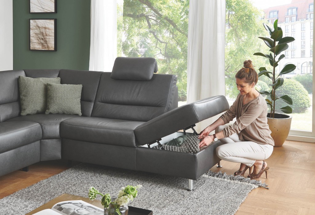 3-Sitzer, Armteil links, WallAway links WA1, Funktionsablage mit Steckdose und USB-Anschluss, Stecker Typ F, BHT ca. 184/92/97 cm