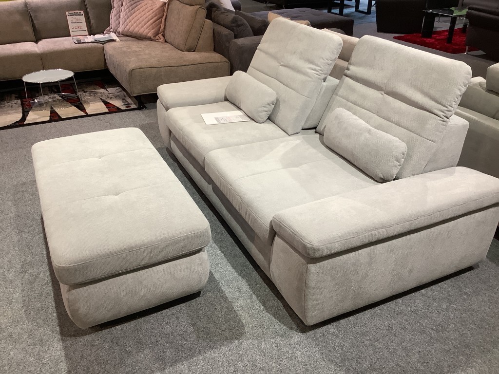 Chilliges Sofa mit XXL Hocker in Kaltschaumpolsterung für Lounge Sitzgefühl. Inkl Kopfteilverstellung, Sitztiefenverstellung und Nierenkissen.Abholpreis, Lieferung gegen Aufpreis möglich