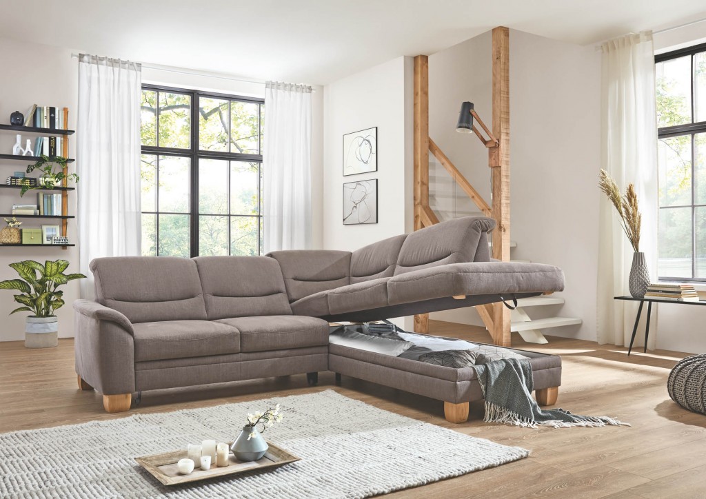 1-Sitzer Kombielement X mit aufklappbarem Bettkasten, Anstellhocker rechts, inklusive Kopfpolsterverstellung, Rücken echt, BHT ca. 97/88-106/224 cm