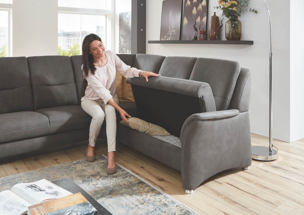2-Sitzer, Armteil rechts, Rücken echt, inklusive aufklappbarem Bettkasten, BHT ca. 125/98/92 cm
