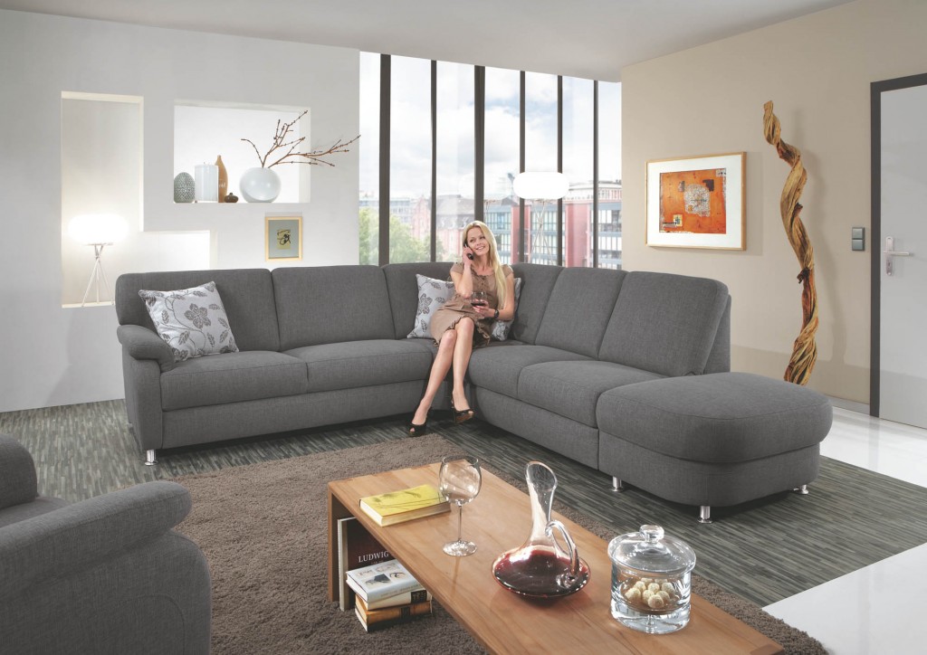 Doppelflock, Nutzschicht 100% Polyamid, Grundschicht 60% Polyester, 40% Acryl, Farbe anthrazit, Sitz Kaltschaum, Alufuß, Sitzhöhe 44 cm, Sitztiefe 53 cm, bestehend aus: