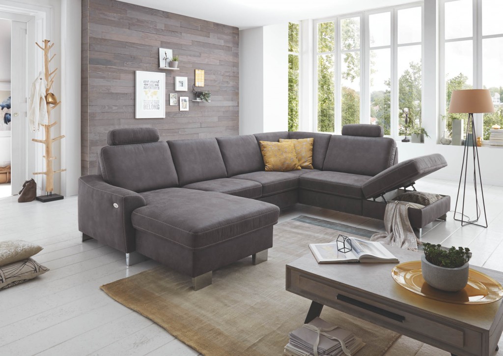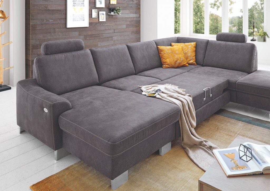 Canape mit Motor, Armlehne links, Rücken Nessel, 1x Kopfstütze, BHT ca. 92/90/167-203 cm