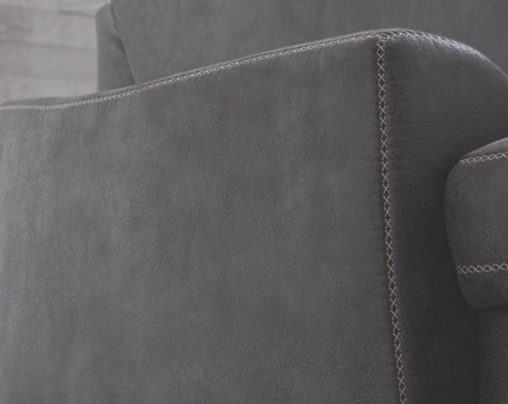 Polyestervelour gestrickt, 100% Polyester, Farbe anthrazit, Kreuzstichnaht mit Kontrastfaden beige, Sitz Kaltschaum, Metallfuß glänzend, Sitzhöhe 46 cm, bestehend aus:
