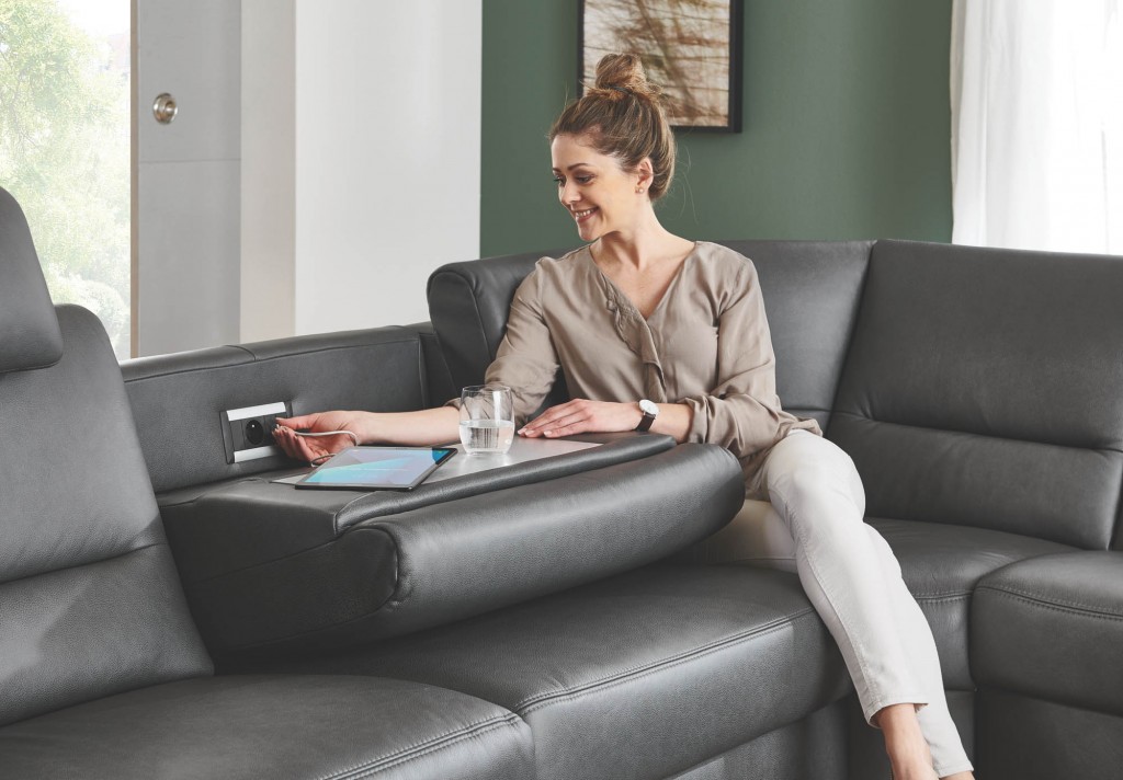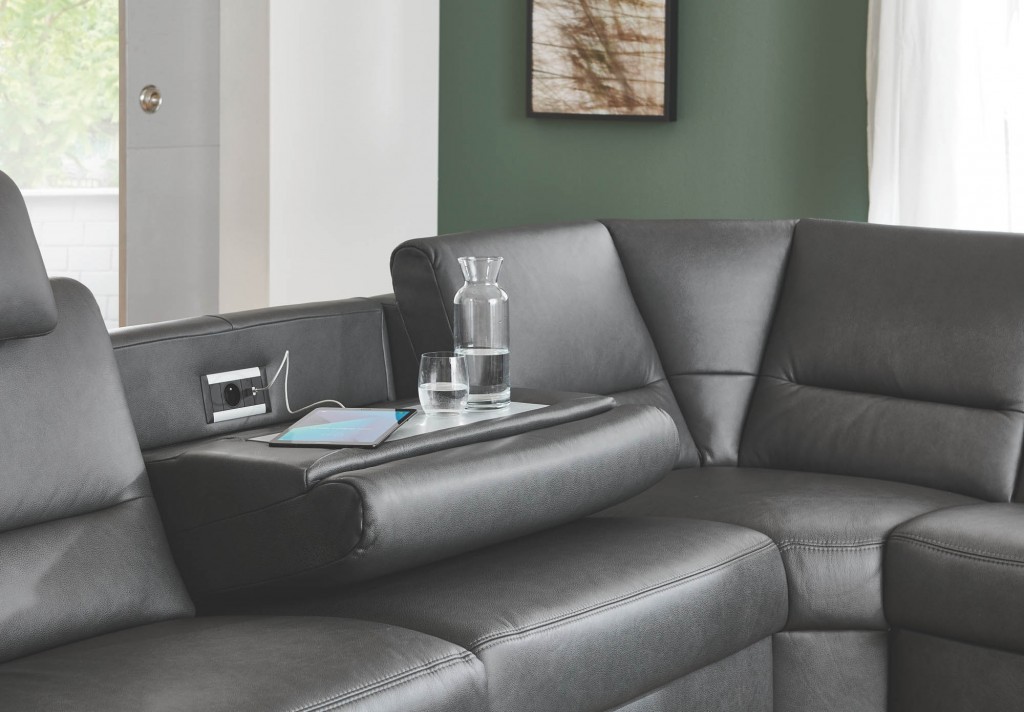 3-Sitzer, Armteil links, WallAway links WA1, Funktionsablage mit Steckdose und USB-Anschluss, Stecker Typ F, BHT ca. 184/92/97 cm